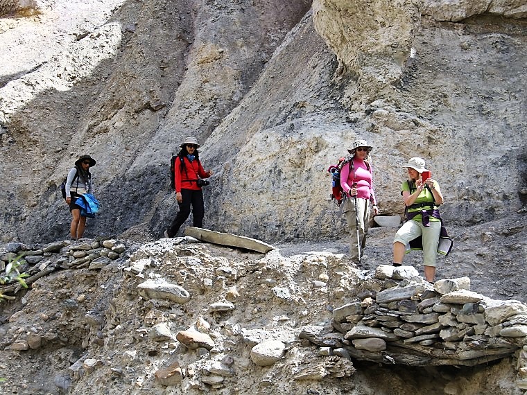 Leaving Shingo, our trail heads south-west through a spectacular narrow gorge lined with graceful willow trees and wild roses, where we may spot more nimble-footed Bharal. We will cross the Shingo steam several time on our way to the village of Sku, located at the junction of the steam and the Markha River, where a small cliff-top monastery is tended by an elderly man, who visit every morning and evening to light the alter lamps. The village is surrounded by verdant field of barley, peas and mustard in dramatic contrast to the wild and barren mountains nearby. The trail then turn south-east following the Markha River through groves of willow and poplar trees, until we cross a bridge and head to our camp site in Sara.