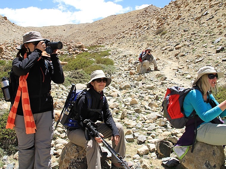 Yesterday rest will leave you refreshed and ready to tackle today journey, which includes a steep, but steady climb up to the Kongmaru-la pass the highest point on our trek! On the way, we will cross a log over the Nemaling River, pass shepherds huts and enjoy further opportunities to encounter the plentiful wildlife. When we reach the summit of the pass, marked by numerous fluttering prayer flags, you will be rewarded with an awe-inspiring vista of snow-clad peaks in every direction. On a clear day the majestic giants of the Karakorum Range, including K2 can be seen on the north west horizon. The trails then descends steeply to the Martselang valley, following the flow of the Martselang stream down to the village of Chogdo, then crises-crossing the stream several times on our way to the village of Shang-sumdo and our final campsite.