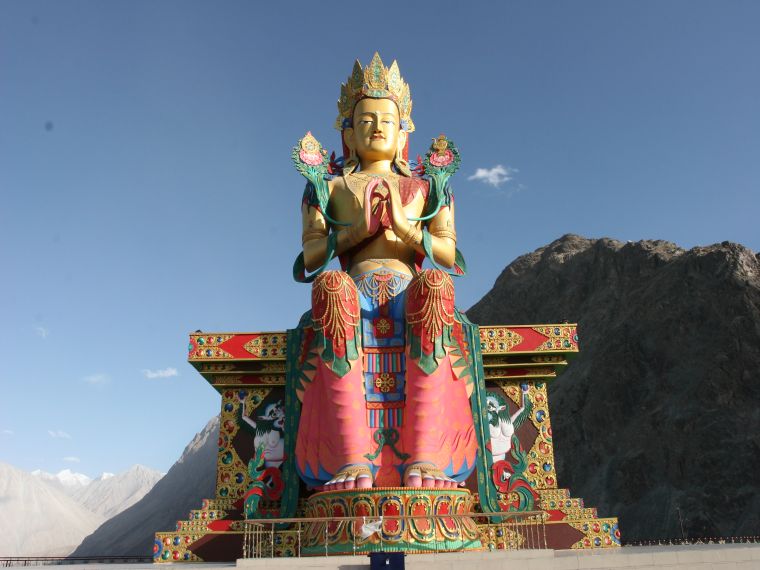 Along the eastern ridge of the Karakorum ranges in northern of Ladakh is the Nubra valley. Today we crossing the Khardong-la 18000ft pass and it is highest motor able road in the world. The pass is the ancient trade route from Leh to Central Asia. The breathtaking view from the pass surveys an entire length of the Indus valley in the south and a magnificent panorama of snow clad peaks. The route follows the valley past attractive village to Disket and onward to Hunder down the Shayok valley the trail wanders past rolling sand dunes. In Hunder there is a small population of the double humped Bactrian camels and if wish you can experience with camel ride on sand dunes.