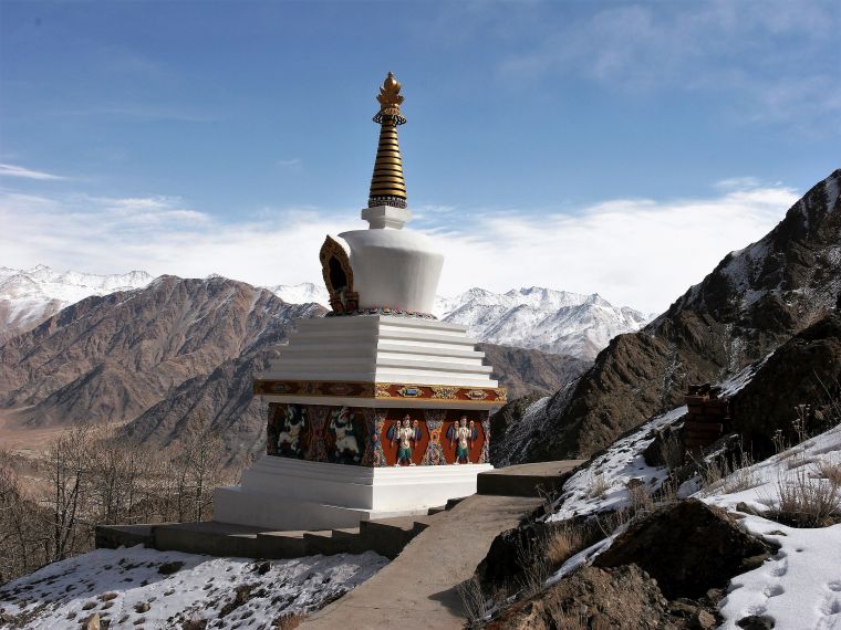 Stok Palace across the river Indus is the home of the former royal family of Ladakh. The palace museum, where has a collection of beautiful royal costume and jewellers, exquisite Thangkas (a religious themes, icons painted and embroidered on cloth).