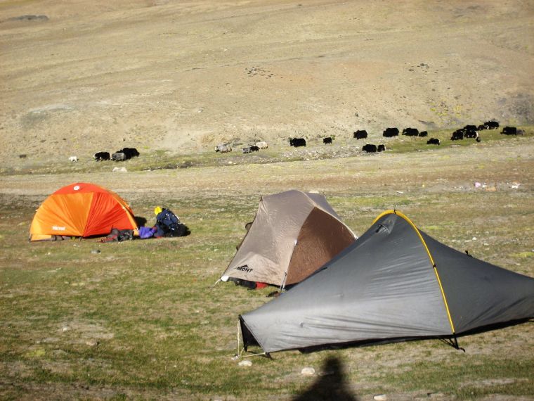 Same as yesterday you wake up with cup of tea. We gain the height from the campsite up in the valley. Kongski-la pass 4980 meter is the highest point, during the trek. If you are lucky you might be seeing the animal, such as Himalayan Marmot, Bharal and Red Fox etc. When you are close to the summit the colourful prayer flags welcome you and on the top you have great view of surrounding snow cover peaks. From the pass we have a steep decent towards the camp in village Sumda Chenmo.