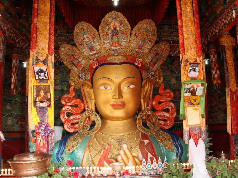 We begin our sightseeing tour with Shey, a former Royal Palace of the Ladakh king, inside the royal chapel 350 year old copper and gold statue of Buddha. The Thiksey monastery perched on top of a hill its red and white building. We can explore the monastery and courtyards. In one of the temples there is a 15 meter high statue of the Buddha.