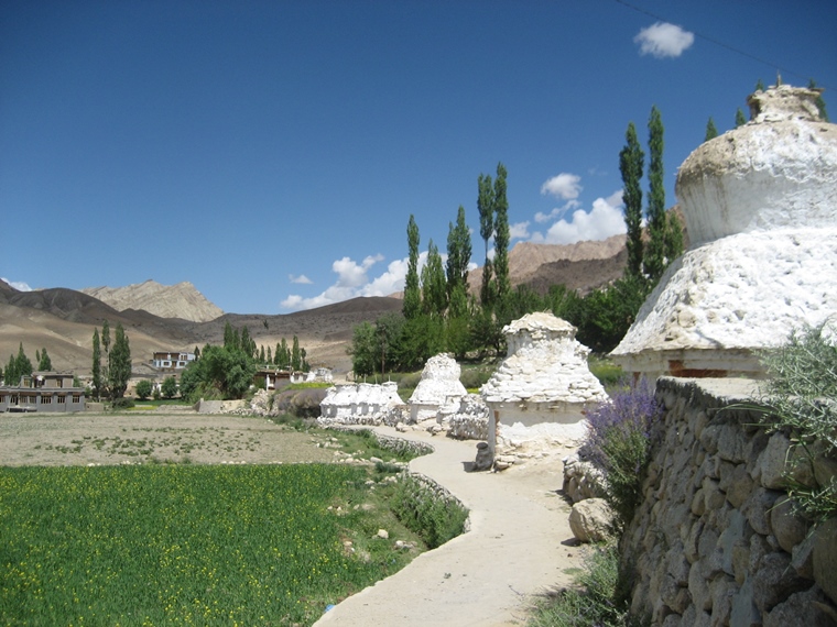 Drive back to Leh and en route stop at village Alchi is set in a side valley hidden from the main road and is an oasis of calm. Alchi monastery is one of the most important cultural sites in Ladakh. Built in the 11th century, it is a treasure trove of early Buddhist art in the Kashmiri tradition, a style quite different from the Tibetan art found in Ladakh other monasteries. We then follow the main road back into Leh.